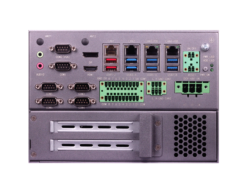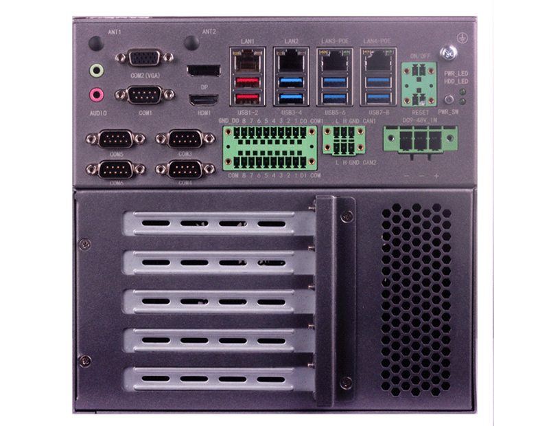 支持Intel 10代 Core i3/i5/i7/i9 LGA1200处理器,4*LAN,8*USB,5*COM,210mm*230mm*208mm